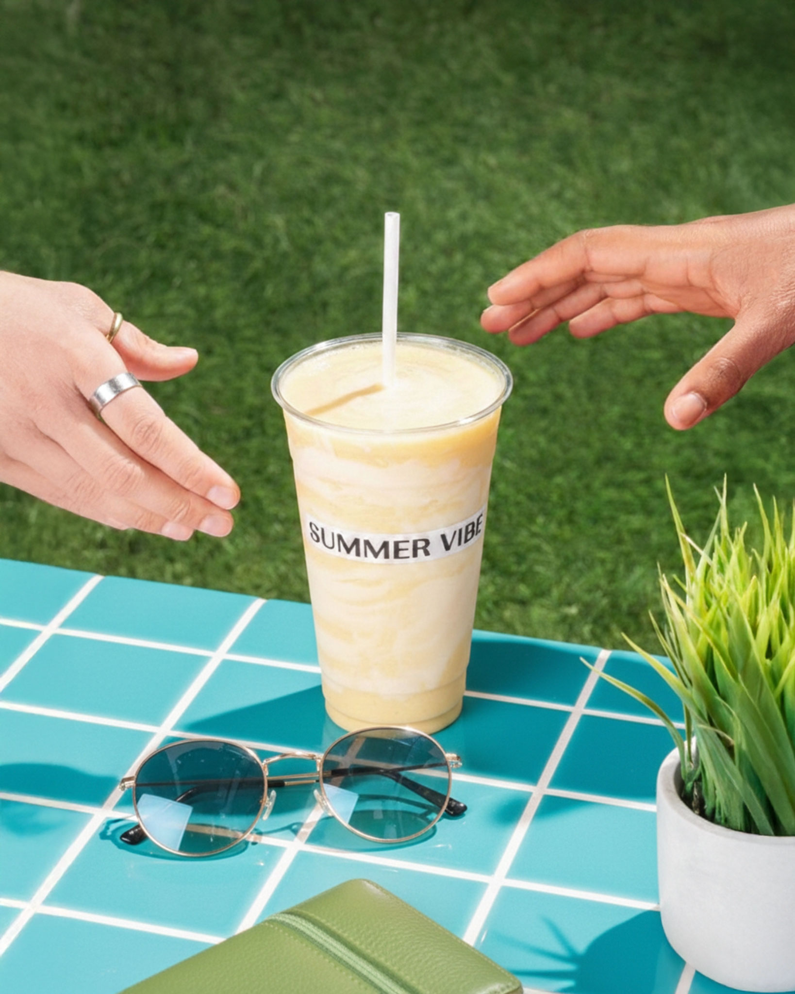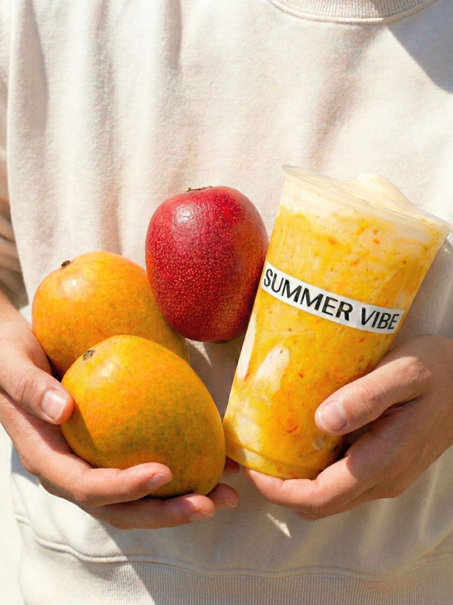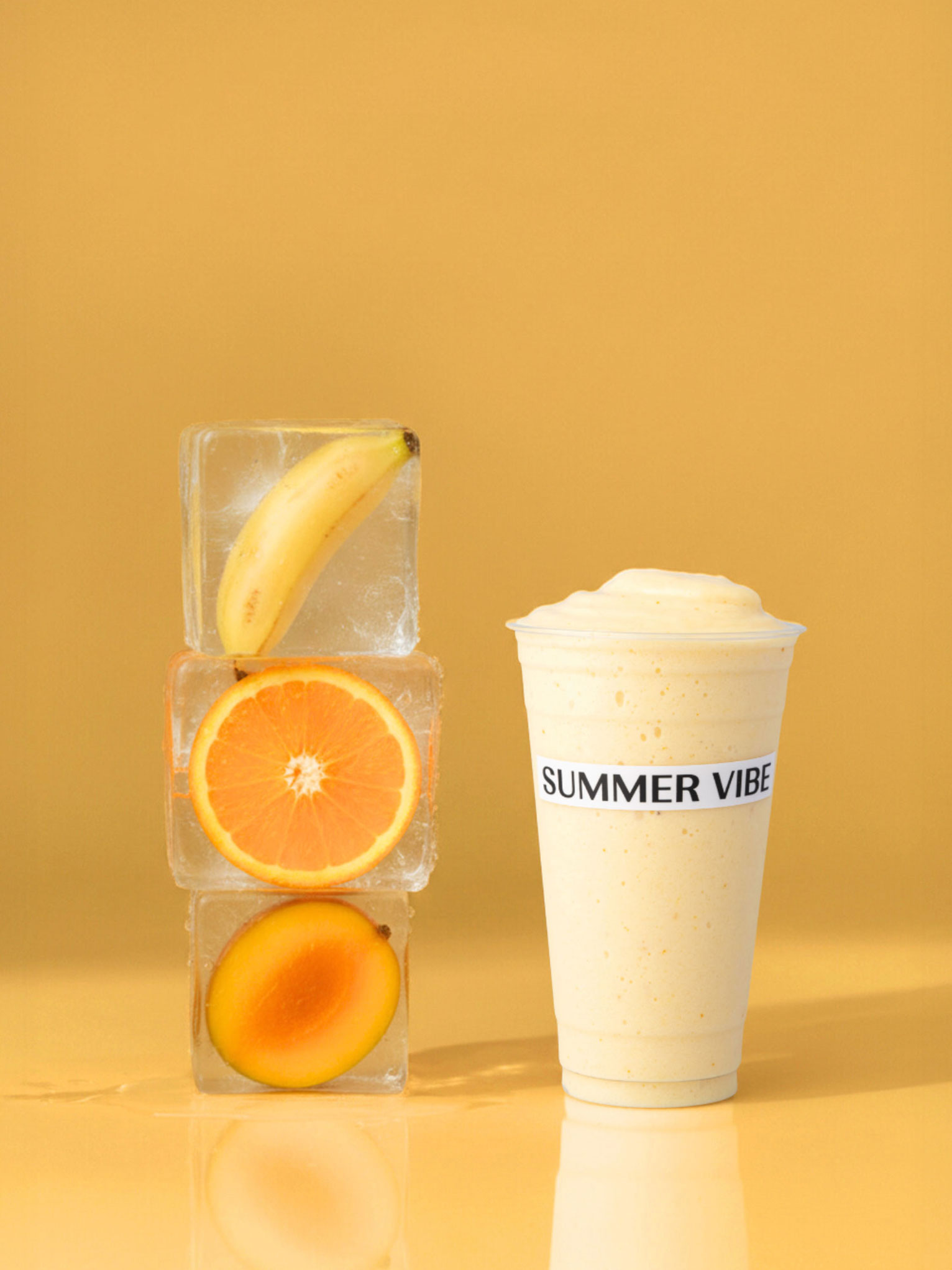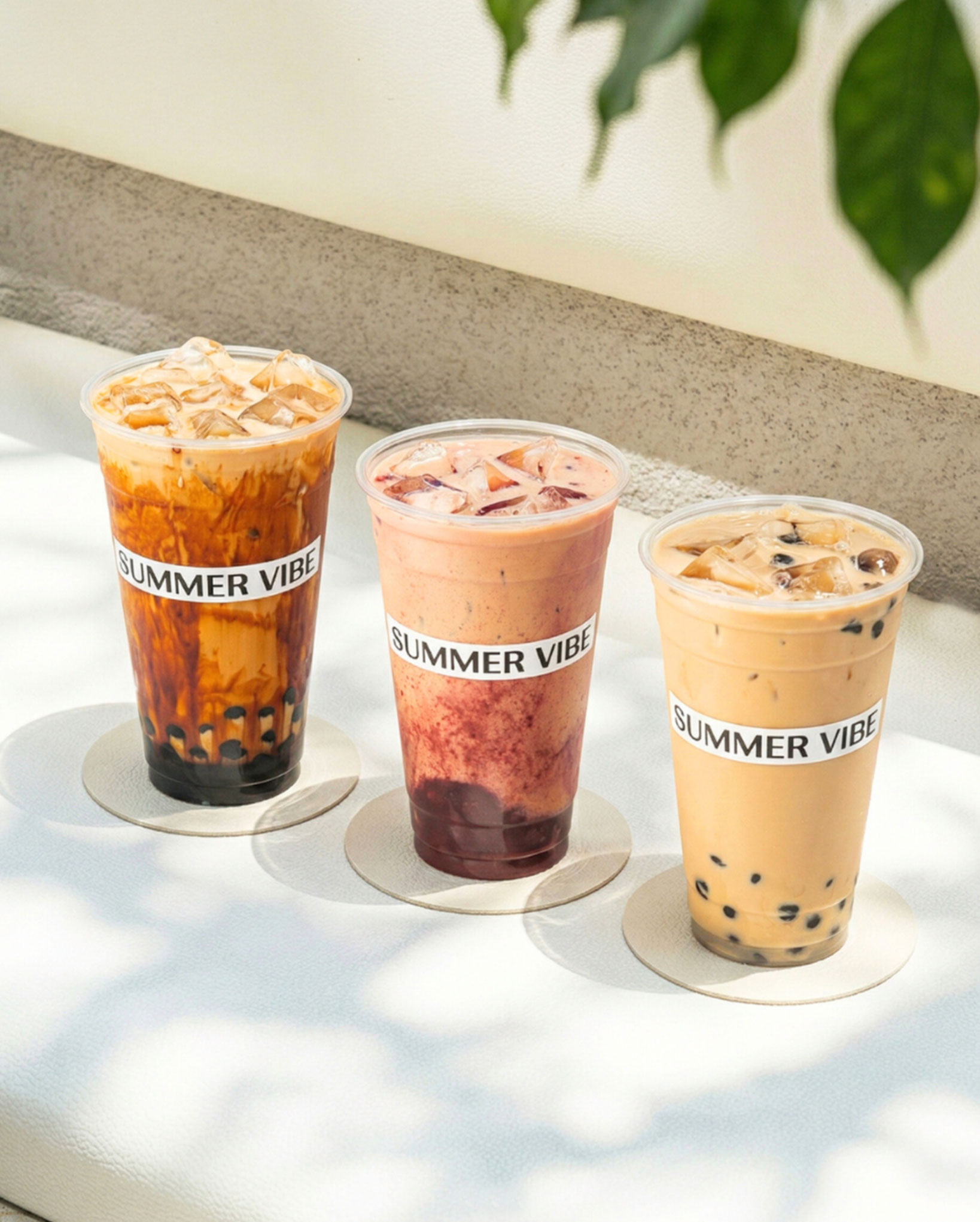 Summer Vibe’s brand identity is built around vivid colors and playful fruit illustrations that express freshness and energy. The design was developed with cup sticker applications in mind, ensuring the brand’s lively character carries seamlessly into offline touchpoints.